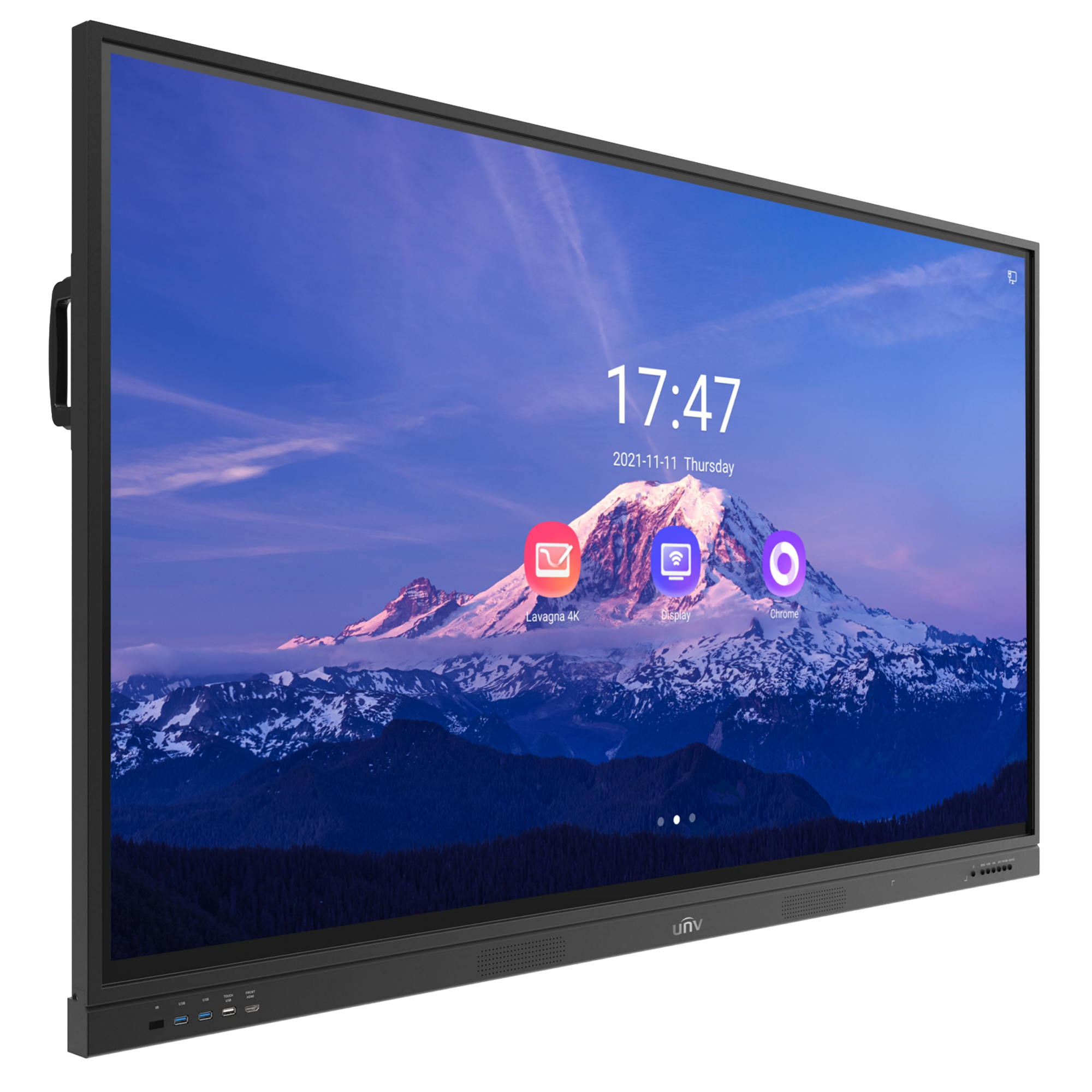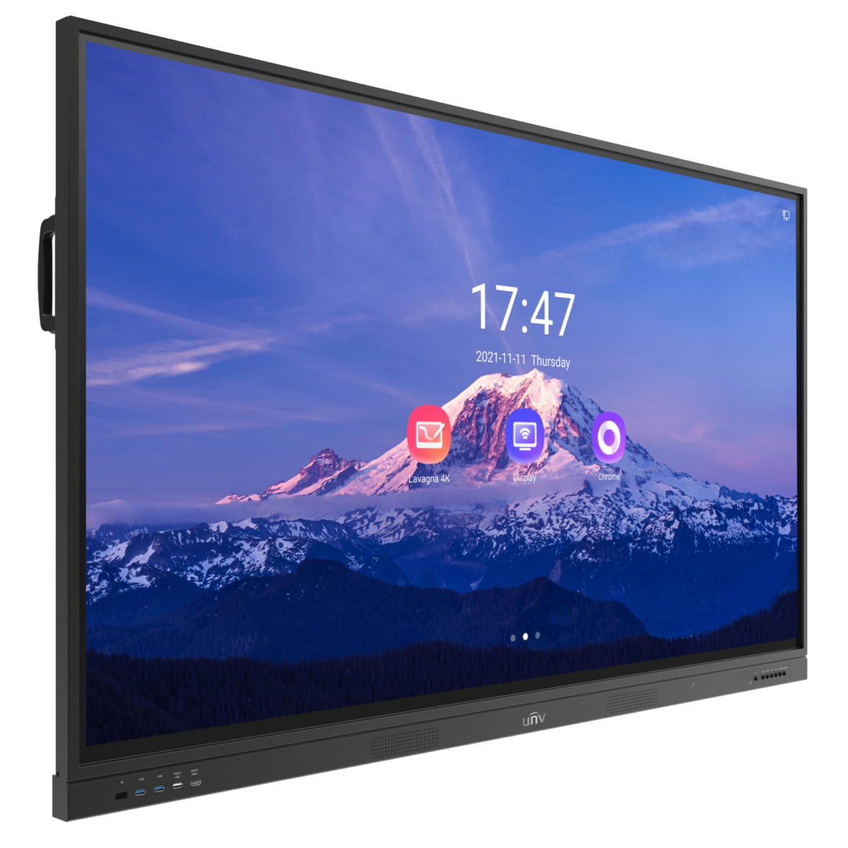 En interaktiv skærm er en digital enhed med berøringsteknologi, der muliggør direkte interaktion med sin egen software eller med en pc (tilsluttet som en perifer enhed eller ved hjælp af en OPS), hvilket fremmer samarbejde, produktivitet og aktiv brugerdeltagelse. Disse skærme integrerer avancerede funktioner såsom berøringsindtastning, realtidsannotationsværktøjer og tilslutning til flere enheder, hvilket gør dem til en alsidig og tilpasningsdygtig løsning til en række forskellige behov. De bruges i forskellige områder af den offentlige og private sektor, f.eks. i uddannelse til dynamiske klasser, i virksomheder til præsentationer og møder eller i design til kreativt arbejde, blandt andet, hvilket gør dem til et nøgleværktøj til digital transformation. Uniview Interaktiv LED-skærm Opløsning 4K (3840×2160) Størrelse 65″ Specifikt designet til brug i mødelokaler, konference- og undervisningsrum Android-operativsystem 8.0 RAM 3GB EMM C Hukommelse 32GB Dobbelt højttaler 10W 2 RJ45 og Wi-Fi kommunikation HDMI-indgang VGA 4*USB Eksternt Windows-modul kan integreres Inkluderer fjernbetjening, 2* berøringsskærmsvisere og vægbeslag