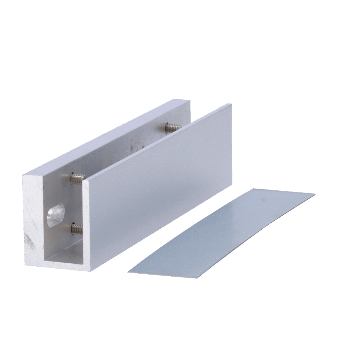 U-profil til elektromagnetiske låse. Kompatibel med YF-180AS magnetlås. Til rammeløse glasdøre. Lavet af anodiseret duraluminium.